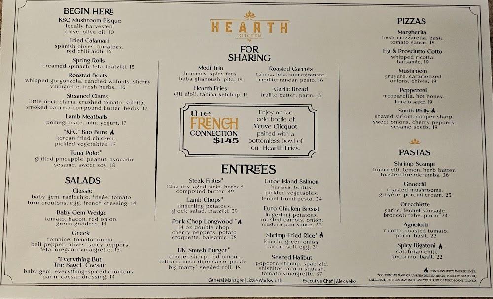 The menu at Hearth Kitchen offers a delightful array of Mediterranean and coastal dishes. Guests can indulge in a variety of pizzas, pastas, and hearty entrees that showcase local ingredients and seasonal flavors. Signature dishes like the spicy rigatoni and classic margherita pizza are must-tries.